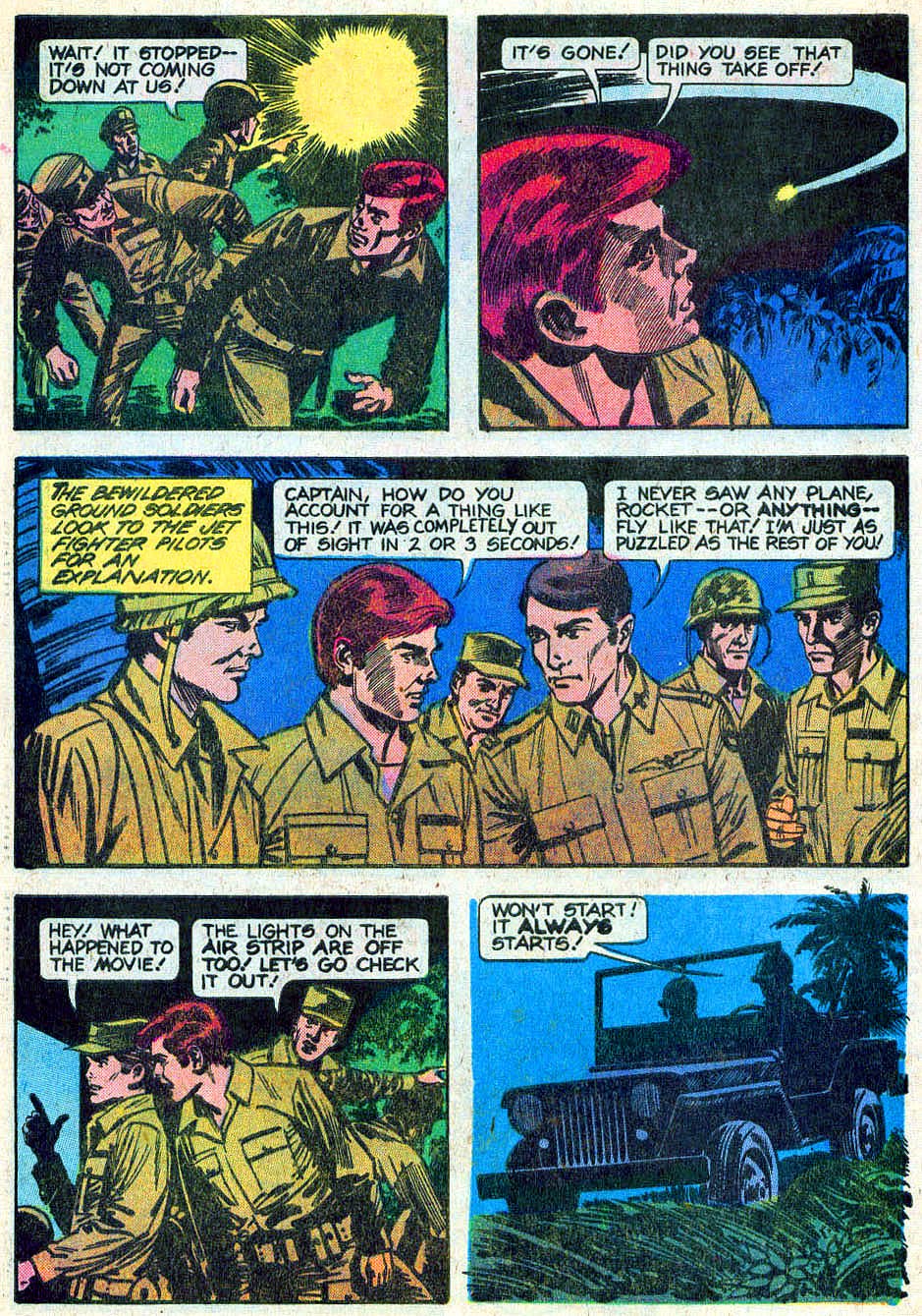 While I am an extreme skeptic and have never seen one, I believe that UFOs exist. After all, it is rather difficult to believe the entire nation experienced a mass hallucination in 1952 when these objects were flying over the U.S. Capitol for the whole world to see (see video). Recently, I was surprised while watching a televised documentary on UFOs where a Department of Defense spokesman said that contrary to popular belief they do not claim UFOs don't exist, but they do say that they pose no danger to the general public. That admission seriously raised my eyebrows. While I've never been a "UFO buff" by any stretch, even at a very young age I wondered, what are these things? I picked up this comic book back when I was a kid in response to that curiosity.